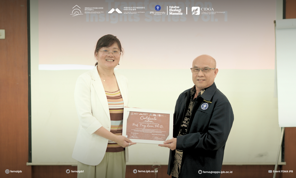 Kegiatan ini dilaksanakan di FEMA IPB University sebagai ruang akademik untuk memperkaya pemahaman mengenai dinamika pembangunan dan transformasi perdesaan, khususnya berdasarkan pengalaman Tiongkok.