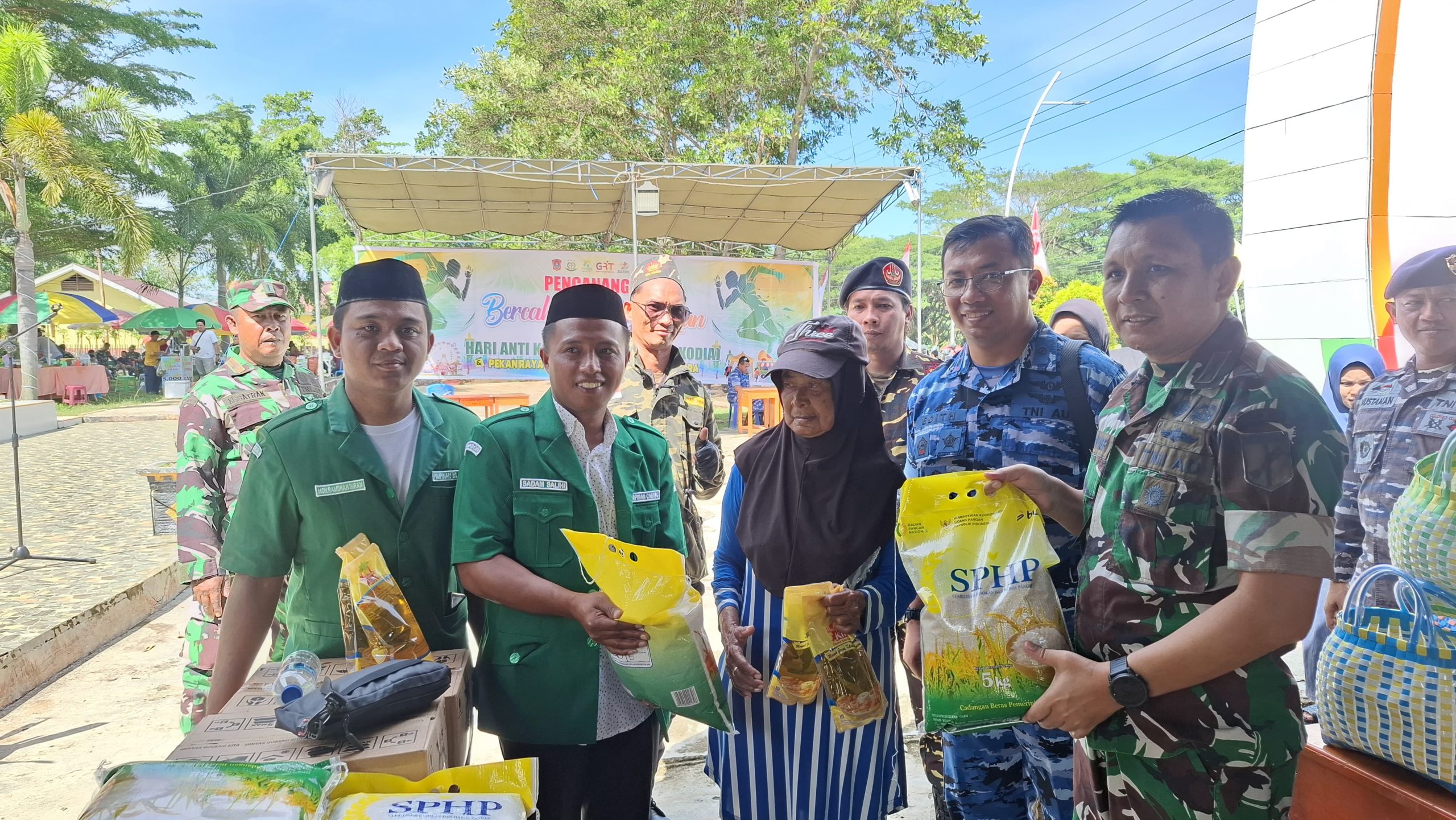 “Kami juga ingin berbagi kebahagiaan dengan masyarakat kurang mampu melalui pemberian bantuan yang kami beli dari pasar murah yang diselenggarakan TNI,” ujar Sadam.