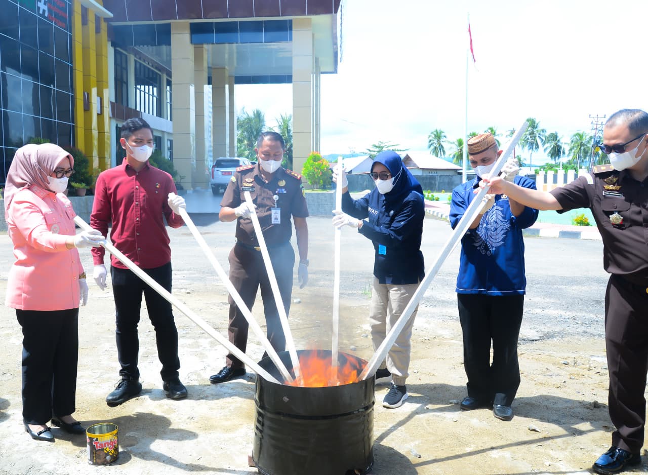 ”Hari ini saya mewakili Pemerintah Daerah menyampaikan apresiasi setinggi-tingginya kepada pihak Kejaksaan Negeri Gorontalo Utara. Kegiatan pemusnahan ini bukan hanya simbol, tetapi penegasan bahwa setiap proses hukum yang telah tuntas harus diakhiri dengan pembersihan barang bukti,” tegas Nurjanah.